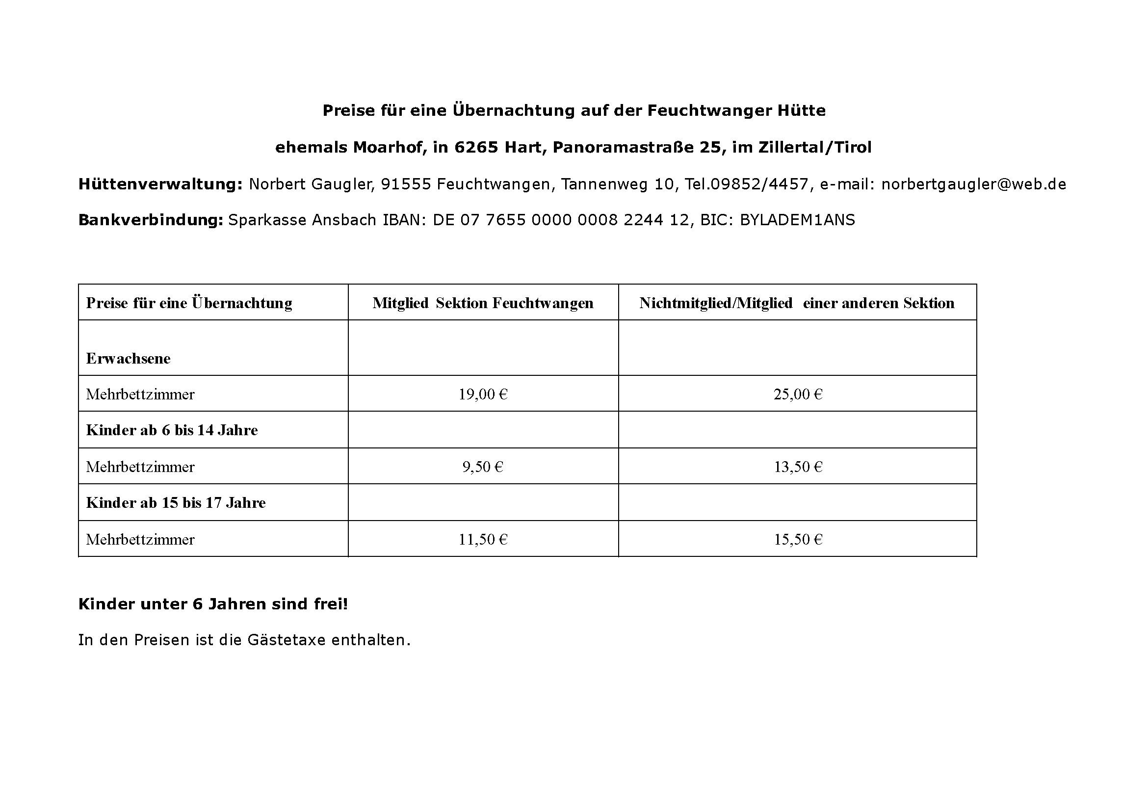 Der Fehlerteufel hat im Jahresbericht zugeschlagen. Die Übernachtungspreise für die Hütte in Hart sind nicht richtig. Hier die neuen Preise.